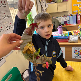 The programme focused on the theme of ‘Samhain’. The children discussed the heritage sites in their local area of Islandeady, learned about the celts and what they brought to Ireland and to end the day made beautiful arts and crafts from leaves and other natural supplies.